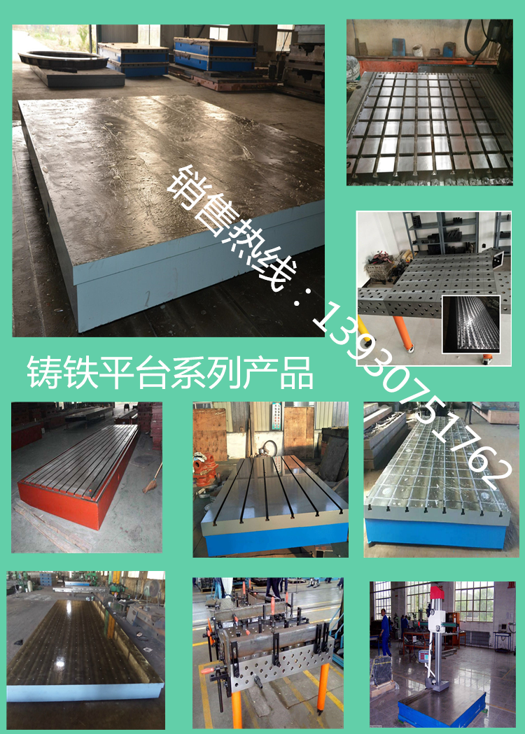 按JB/T7974-1999標(biāo)準(zhǔn)制造,產(chǎn)品制成筋板式和箱體式,工作面有長方形、正方形或圓形,材料HT200-300,QT400-600,ZG15-45。工作面采用刮研工藝,工作面上可加工V形、T形、U形槽、燕尾槽、圓孔、長孔等。平板是用于工件檢測或劃線的平面基準(zhǔn)量具。電機(jī)試驗(yàn)臺安裝就調(diào)至水平板、負(fù)荷均勻分布于各支點(diǎn)上。環(huán)境溫度(20±5)℃。使用時(shí)應(yīng)避免振動。