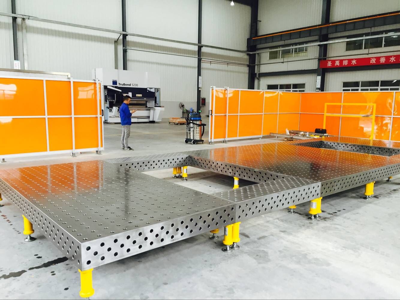 1.三維柔性焊接平臺(tái)工作面不得有嚴(yán)重影響外觀和使用性能的氣孔、裂紋、夾渣、縮松、劃痕、碰傷、銹點(diǎn)等缺陷。